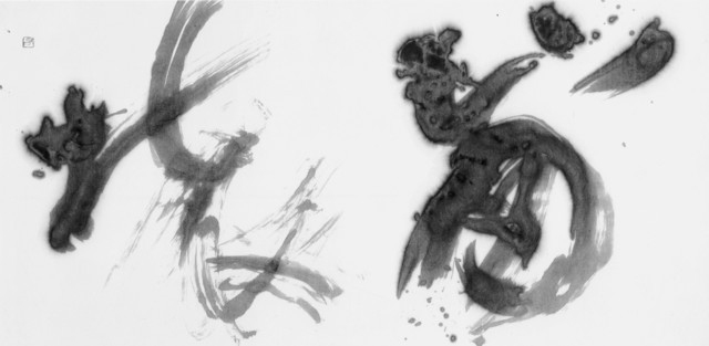 更に別の角度からみてみますと、書は言葉を書く芸術ですから、漢字が読めない外国人には理解できないのではないかと思われますが、独立書人団を創設された手島右卿先生の「崩壊」はブラジル・サンパウロのビエンナーレ展で現代美術として世界的に高い評価をうけました。会場で多くの参観者から「何か崩れゆくものを表現しているのか?」と尋ねられたことから、外国人でも書を味わうことはできる、と思われるのです。